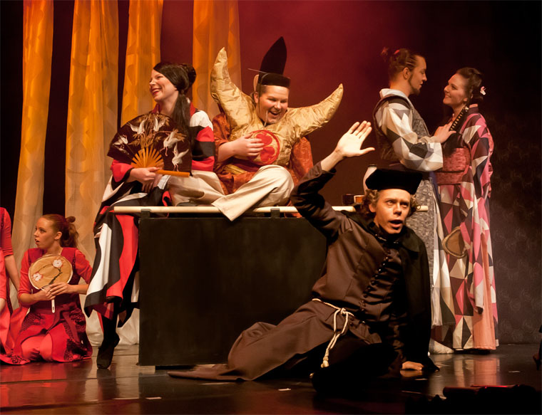 Lavastussuunnitelma ja toteutus Teekkarispeksi ry:n vuoden 2010 produktioon Musashi. Musashi sijoittuu Edo-kauden Japaniin, jonka värikylläinen maailma tarvitsi taustakseen tummaa ja yksinkertaista arkkitehtuuria. Koska speksiä esitettiin eri puolilla Suomea, teimme lavasteista keveitä ja helposti pakattavia. Lavastus koostuu kolmesta pyörin liikuteltavista kappaleesta, joita käytettiin näytelmän aikana eri tavoin. Suunnittelin lavastuksen yhdessä muotoilija Mari Sollmanin kanssa.